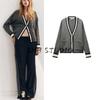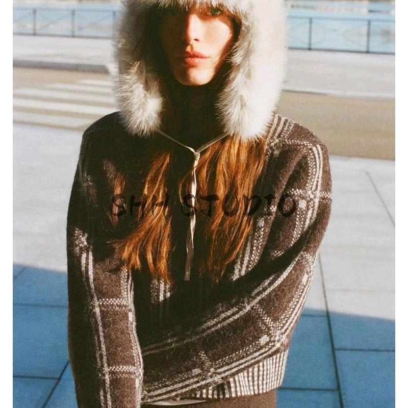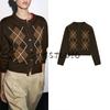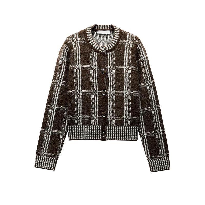 25 Spring New Women's Clothing Idle Style Plaid Printed round Neck Long Sleeves Knitting Cardigan Outwear 6236006