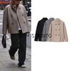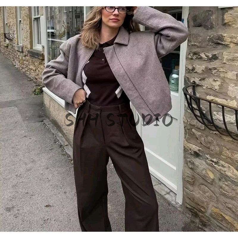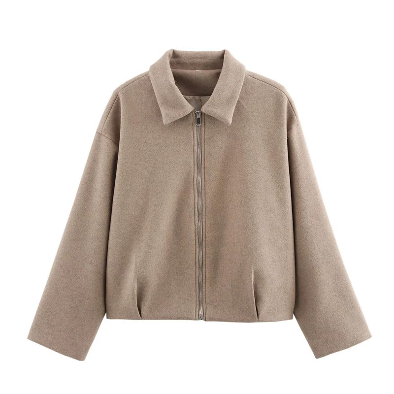 Spring New Women's Clothing Korean Style Loose Casual Minimalist Polo Collar Long Sleeves Soft Woolen Zipper Jacket Outwear