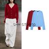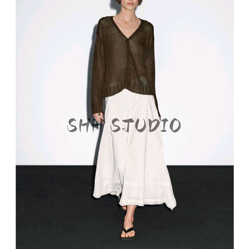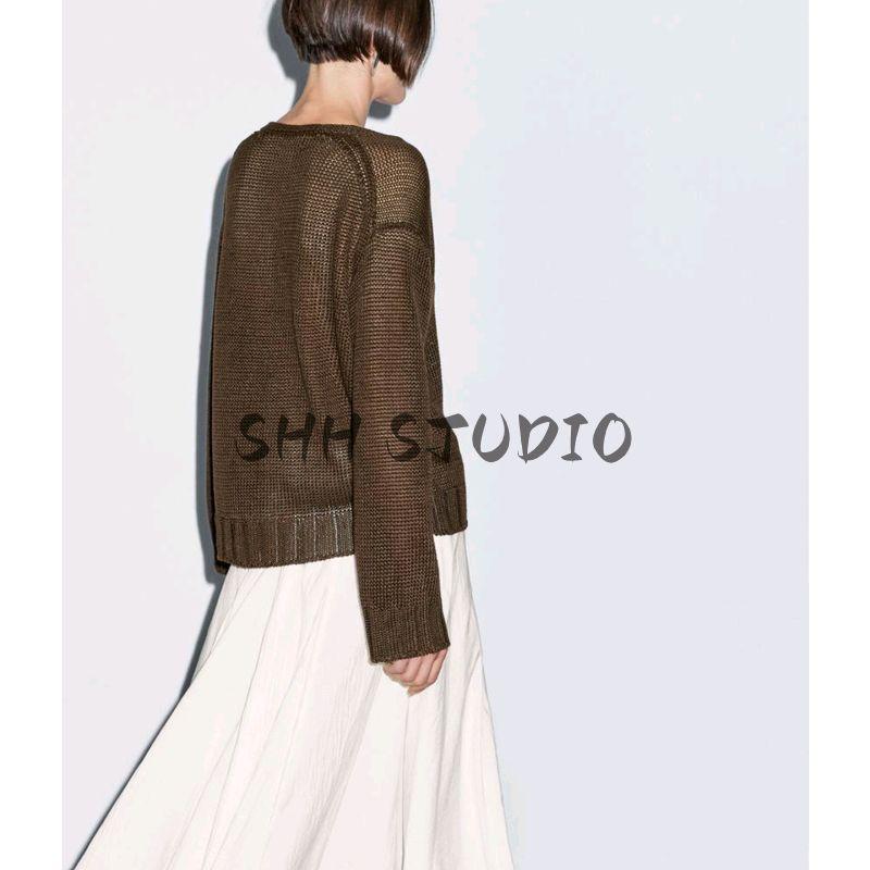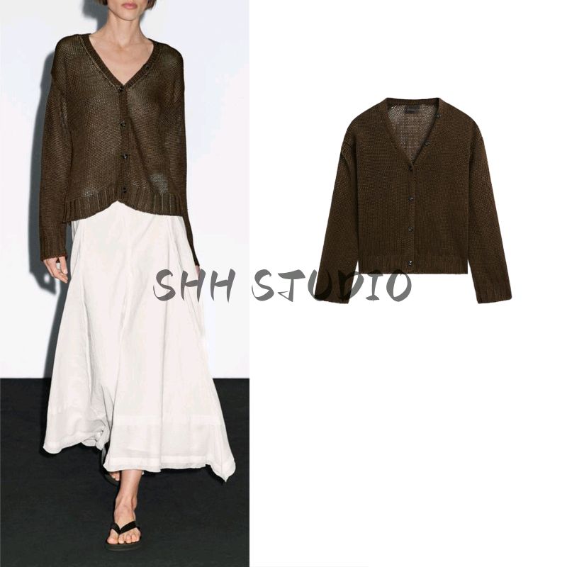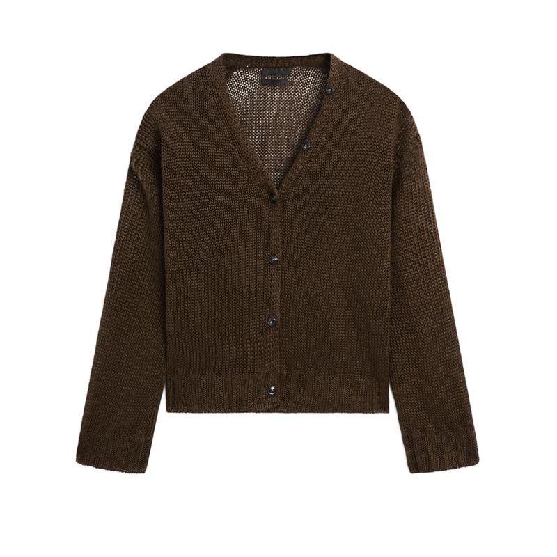 MD Spring/Summer New Arrival Women's Lazy Yandan Brown Light Linen Blend V Neck Knitting Cardigan 5634576