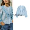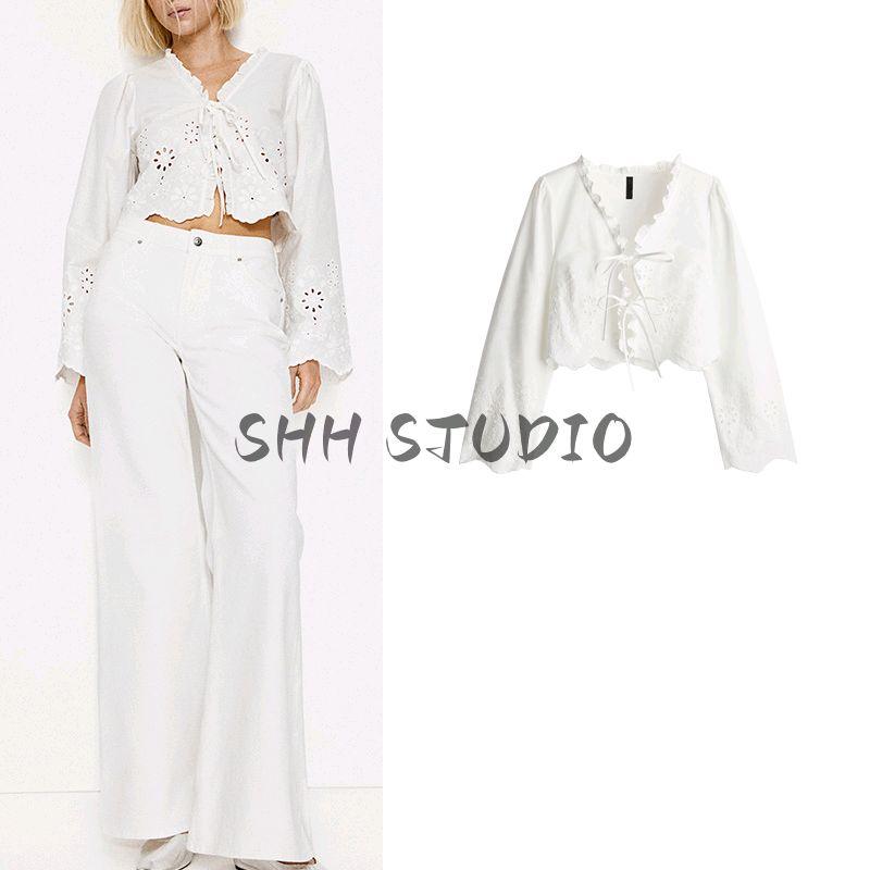 Spring New Women's Clothing Casual Style Puff Sleeves V-neck Hollow Embroider Cotton Shirt Tops 1268146