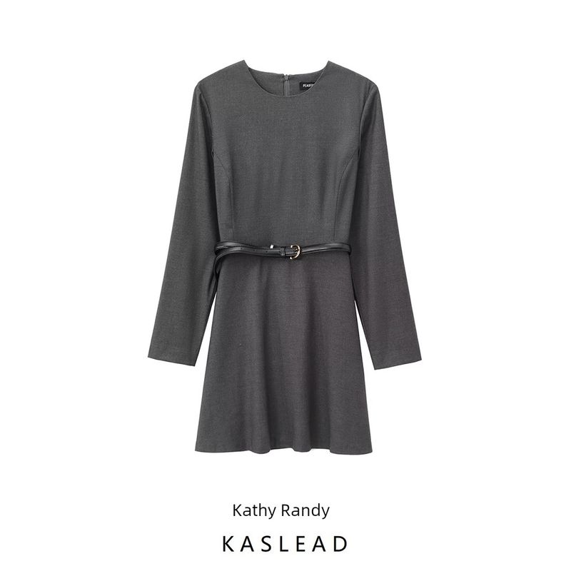 Kaslead New Arrival Women's Clothing Fashion Style Fashion with Belt Tight Waist Minimalist Short Dress 3736263