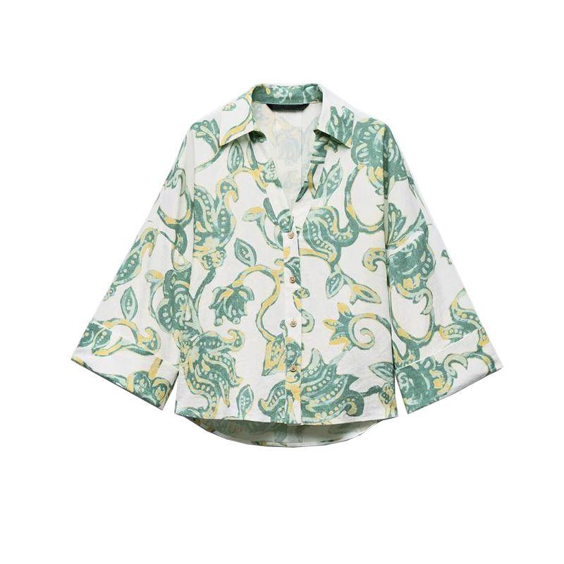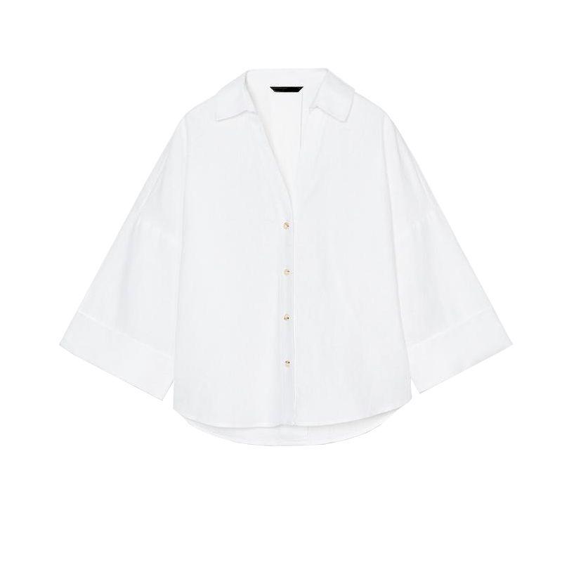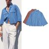 Spring New Women's Clothing French Simplicity Style Light Spring Linen Blended Wide Sleeve Plaid Shirt 2340939
