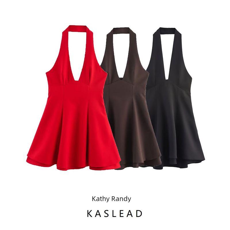 Kaslead Новая женская одежда Мода в западном стиле Двухслойное платье с воротником 3152269