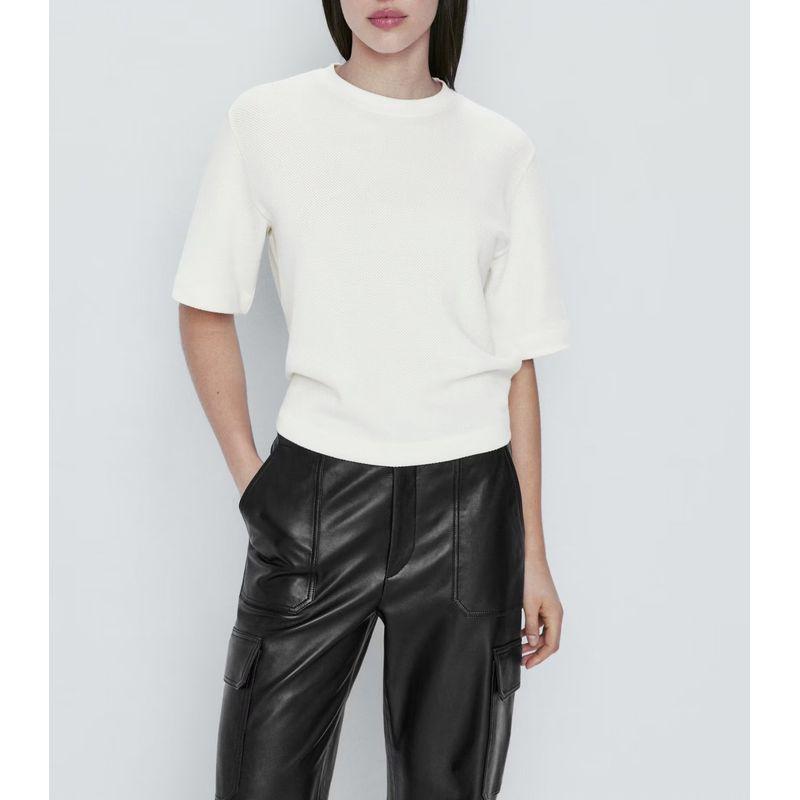 MD Summer New Arrival Basic Style Base White Shirt Loose Plaid Cotton Half Sleeve T-shirt 6804932