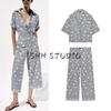Spring New Women's Clothing Lapel Print Shirt 2329654 Geometric Pattern Printed Pants 2336655