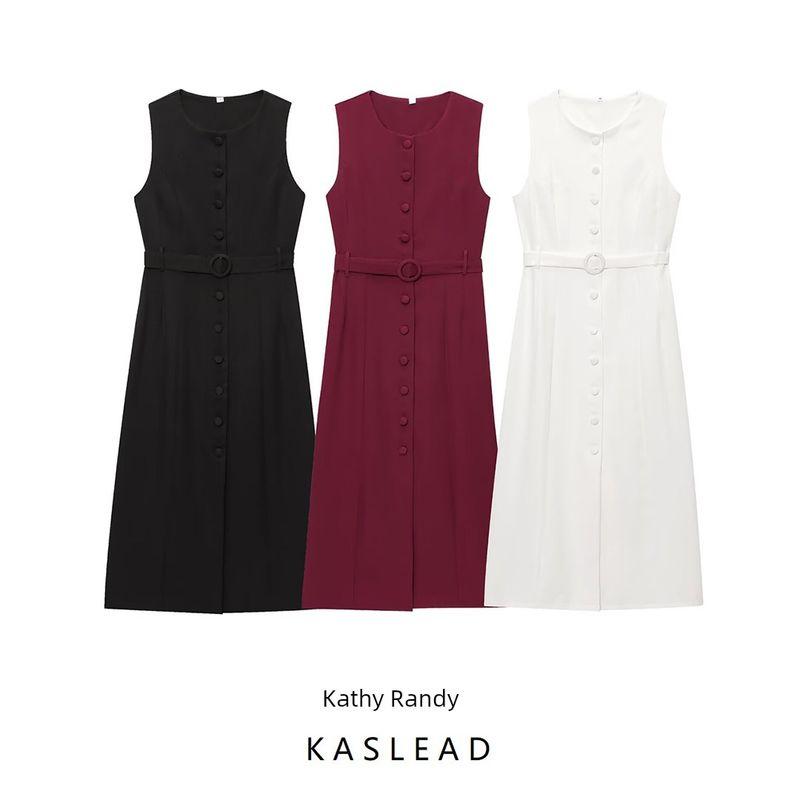 Kaslead New Women clothes Western Style Fashion Simple Slim fit Single Breasted Sleeveless Dress
