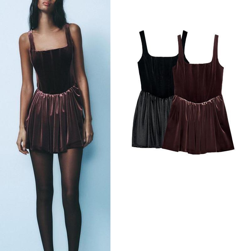 Осень и Зима Новая Женская Одежда Бархатное Драпированное Корсетное Короткое Платье 4764287 9194072