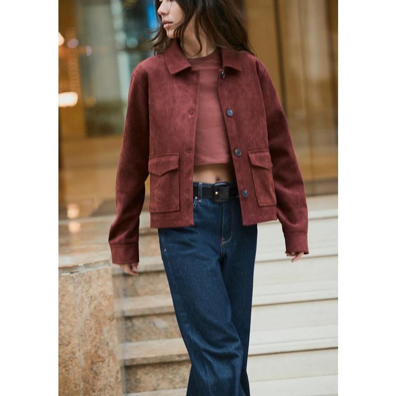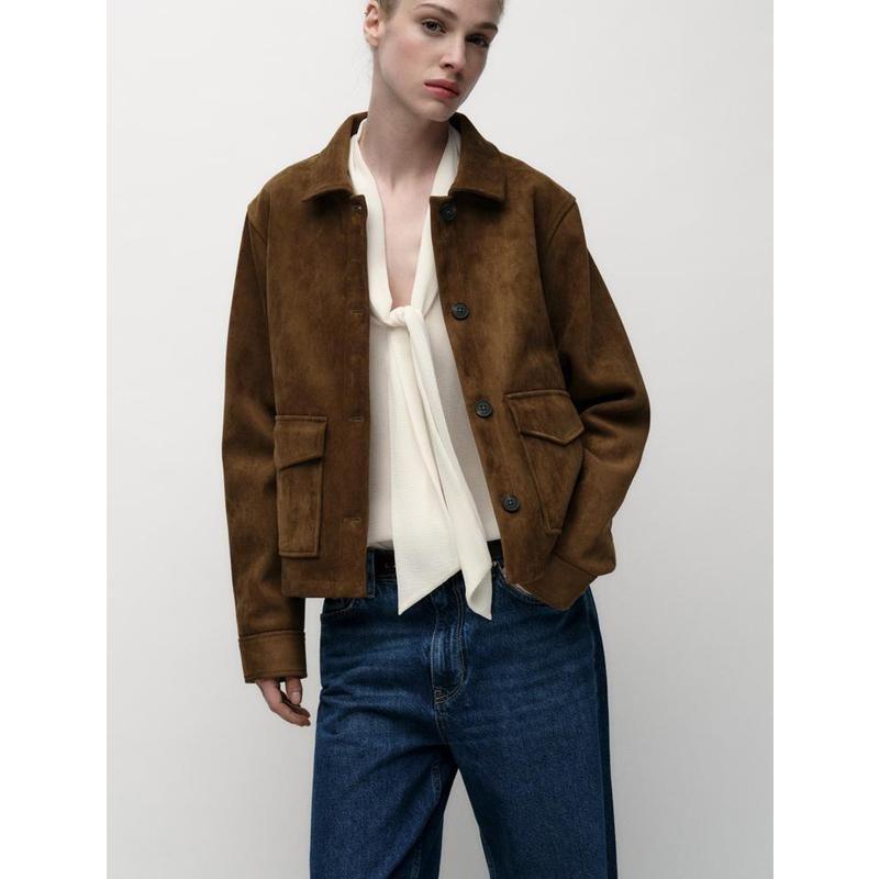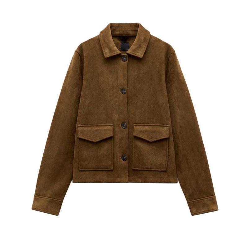 Весна Новое поступление Ретро Рабочая одежда Свободный эффект замшевой текстуры Куртка с лацканами с длинными рукавами 4344622