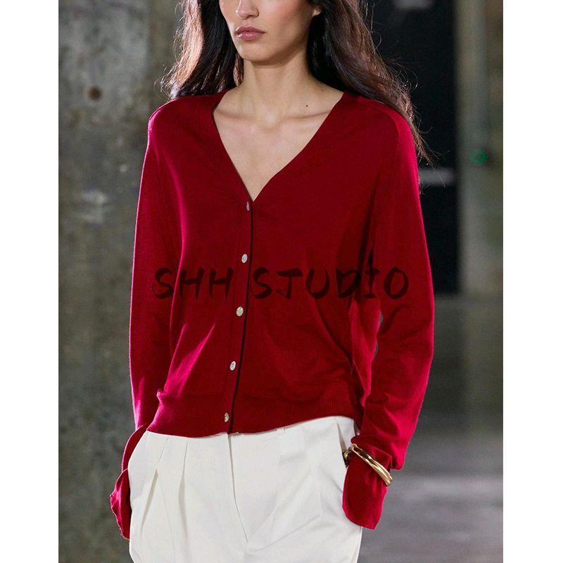 Summer New Women clothes Preppy Single Row Multi-Button Fine Needle Long sleeve V-neck Simple Knitted Outerwear 9598088