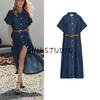 Spring New Women's Clothing American Style Classic Style with Belt Short Sleeve Lapel Shirt Dress 3897060