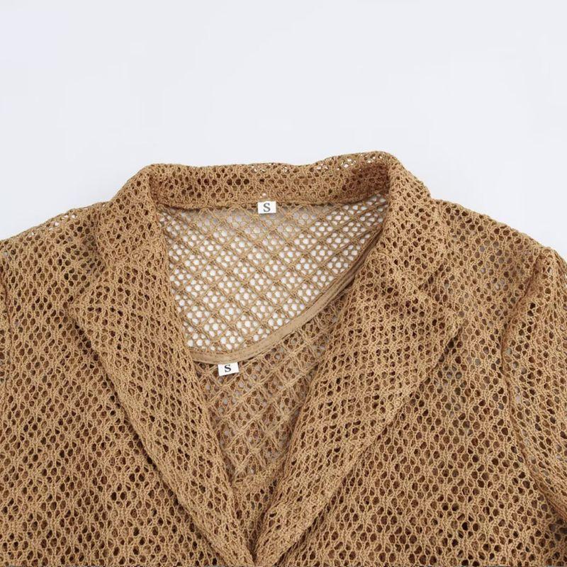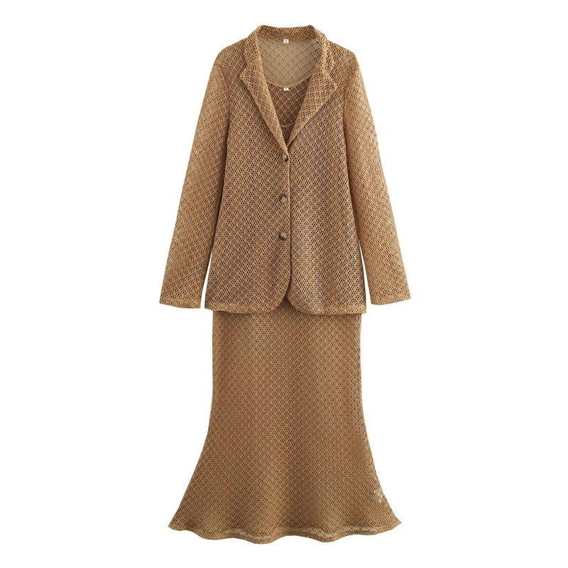 Kaslead Новая женская одежда Вязаные ажурные блейзеры в западном стиле Платье Комплект из двух предметов