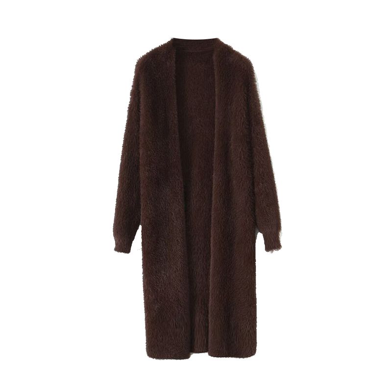 Kaslead New Women clothes Western Style Fashion Simple Loose Mohair Long sleeve Cardigan