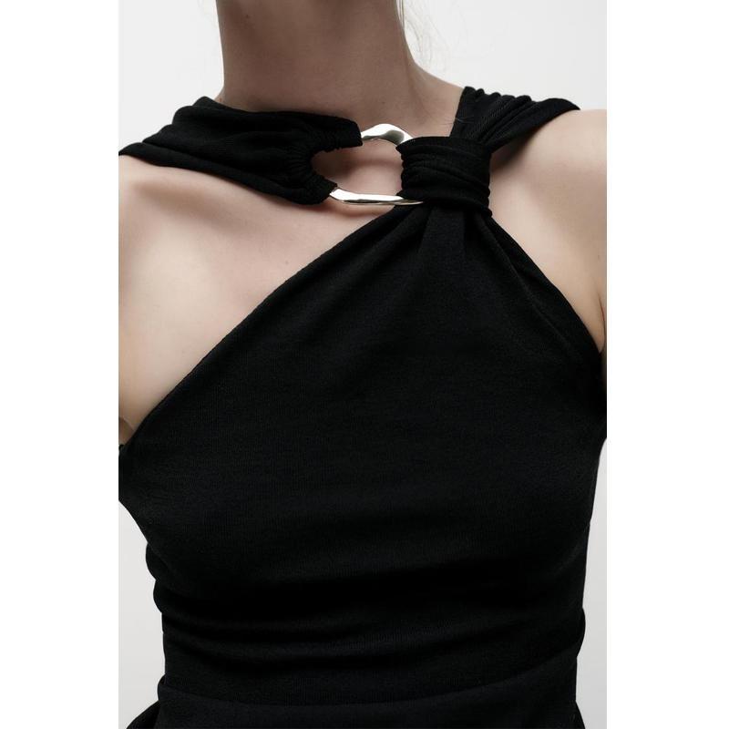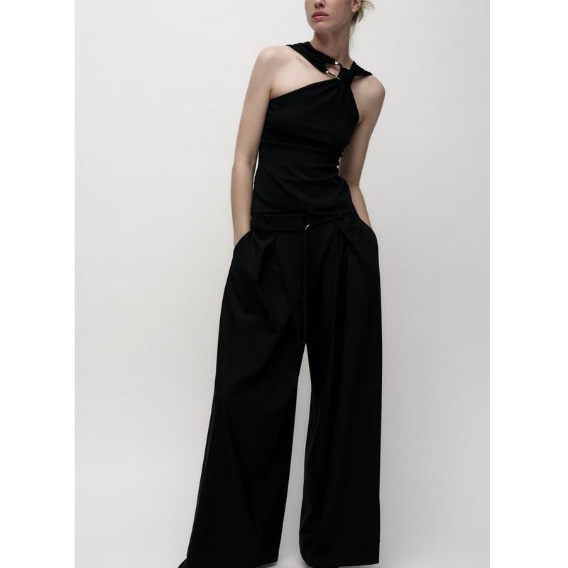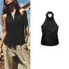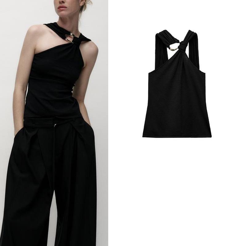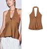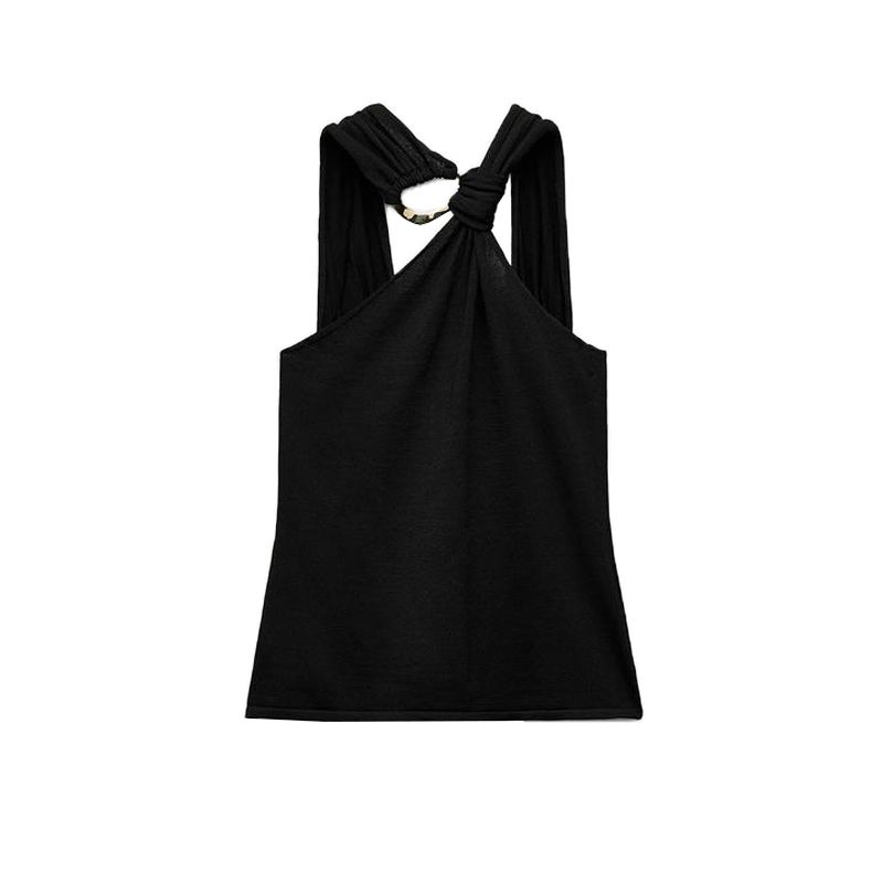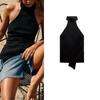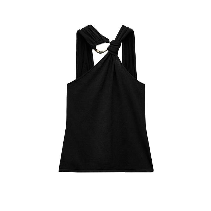 Fall and Winter New Women's Clothing French Design Sleeveless Halter Gold Inlay and Bow Tie Tops 4938106