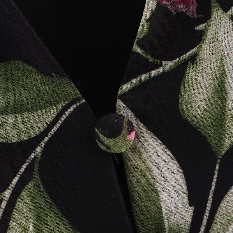Kaslead New Arrival Women's Clothing Fashion Style Fashion Chiffon Florals Printed V-neck Waist-Tight Puff Sleeve Dress