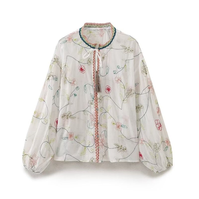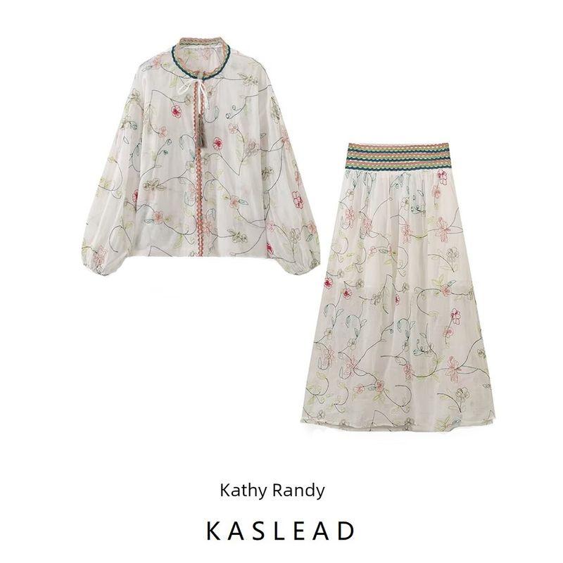 Kaslead Новое поступление Женский модный стиль Вышивка цветком Рубашка Повседневный костюм с юбкой 5770537