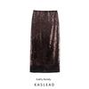 Kaslead New Women clothes Western Style Fashion Hem Sequins Sequin Split Velvet Skirt