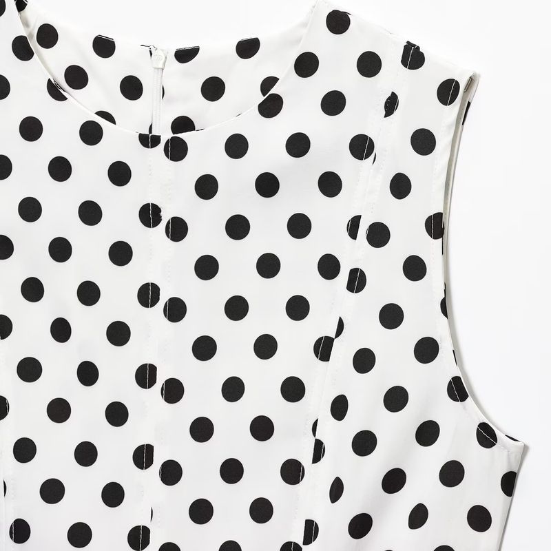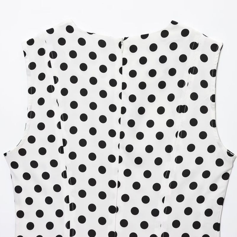 Kaslead Новая женская одежда Западный стиль Мода Похудение В горошек Миди Без рукавов Платье 2183057