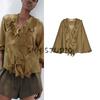 Spring New Women's New Year Series Lotus Collar Long Sleeves Animal Pattern Print Laminated Shirt 2067103