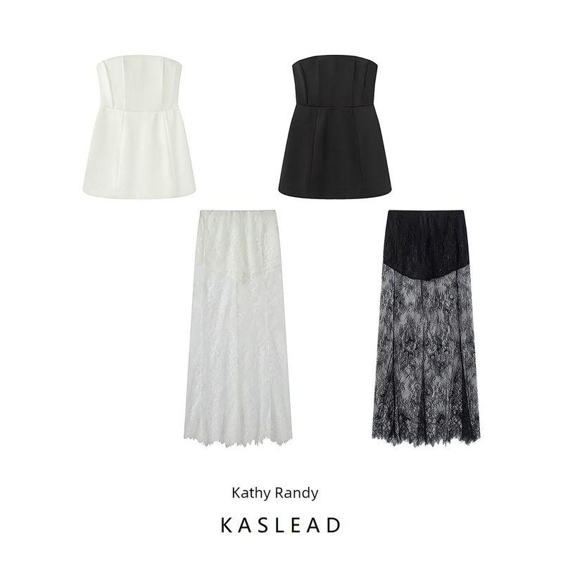 Kaslead New Arrival Women's Clothing Fashion Style Fashion Waist-Controlled Tube Top Vest High Waist Lace Long Dress Suit