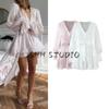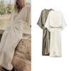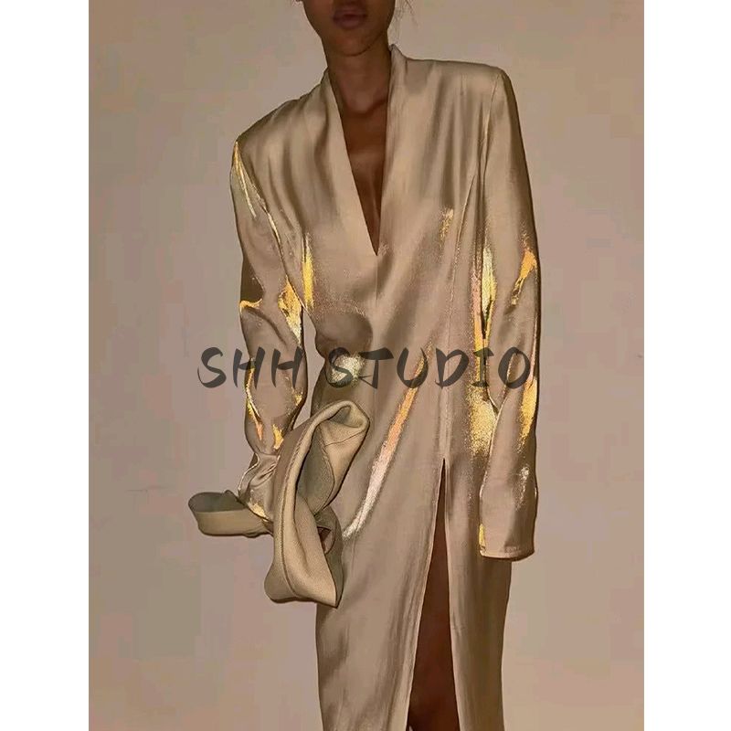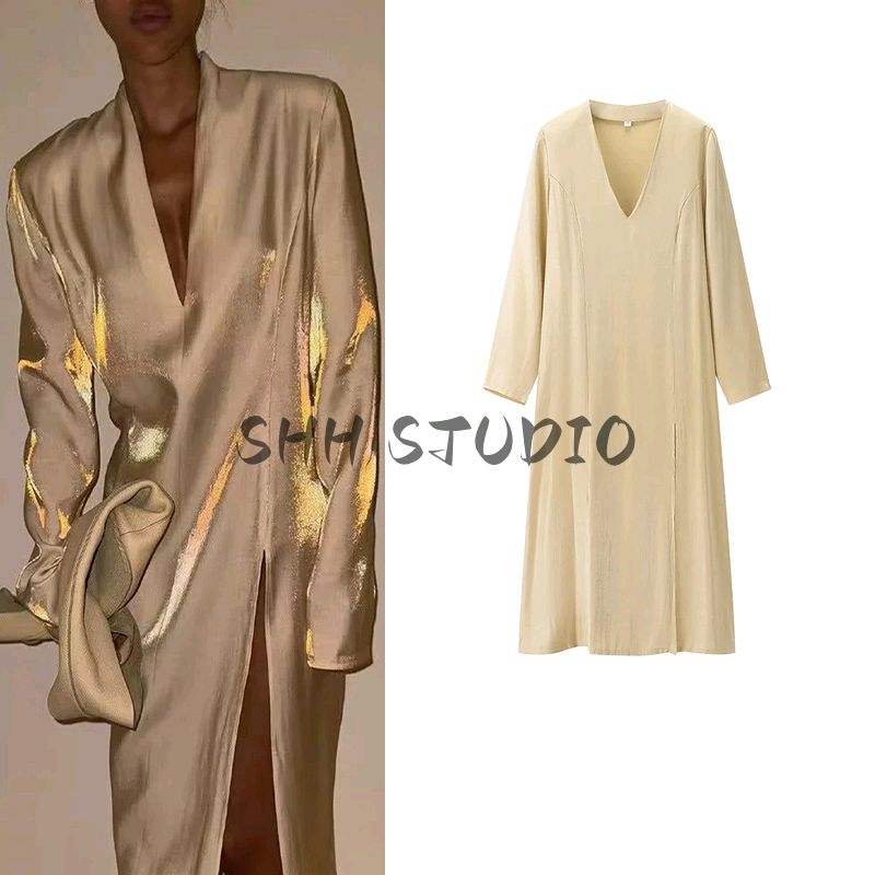 Spring New Women's Clothing French Style Casual Plaid Loose-Fitting V-neck Long Sleeves A- line High Waist Mid Length Long Length Dress
