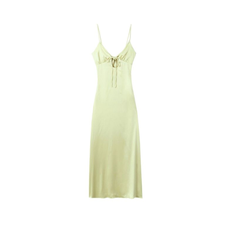 Kaslead New Arrival Women's Clothing Fashion Style Fashion Slim-Fitting Simple Elegant Silk Satin Shoelace Dress