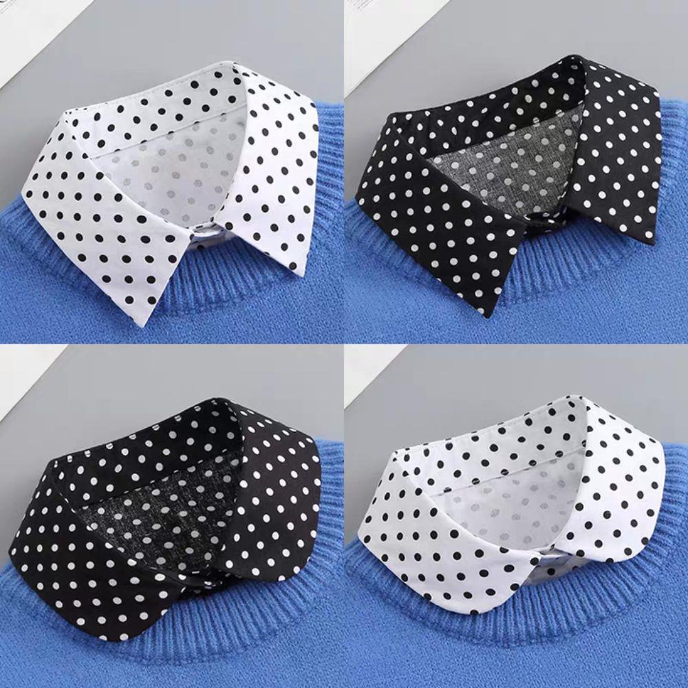 Рубашка в горошек Съемный воротник Завязка спереди Белый Ложный воротник Женский Съемный воротник Стилизованный под винтаж Ложный воротник блузки