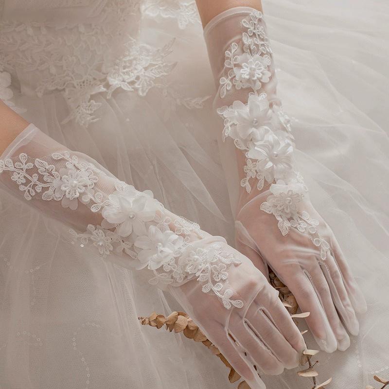 Элегантные Длинные Свадебные Туллевые Перчатки Феи Кружевные Цветочные Сетчатые Тонкие Перчатки Реквизит для Фотографии Аксессуары для Платья Невесты