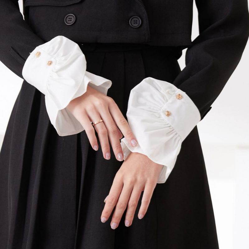 Женские короткие многослойные эластичные манжеты с цветочным принтом, фальшивые рукава с оборками, черно-белые, аксессуар для костюма, браслеты для девочки
