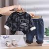 Комплект из 2 предметов с длинным рукавом для мальчиков, 0-5 лет Детская флисовая толстовка с английским принтом + джинсовые брюки