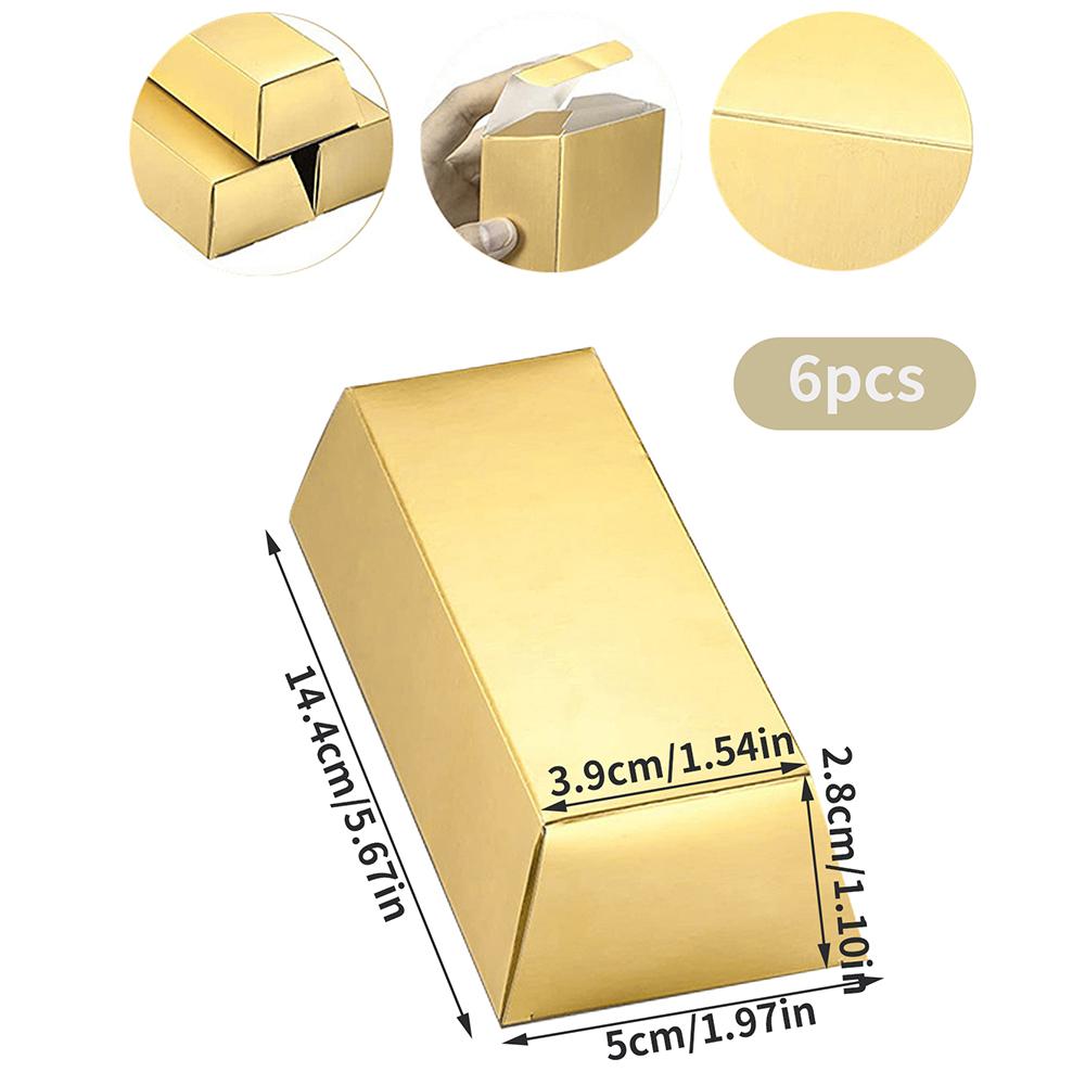 6 шт. Золотые слитки Поддельный слиток Подарочная коробка Сувенир для вечеринки Шоколадные золотые монеты Фольга Сокровище Кирпич Бумажные коробки для Рождества Свадьбы