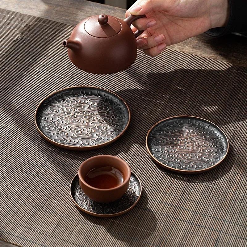 Ретро Сплав Круглый Квадратный Подставка Аксессуары для Чайного Набора Узор Счастливое Облако Подставка для Чашки Изоляционная Подкладка Коврик для Кофе Украшение Стола