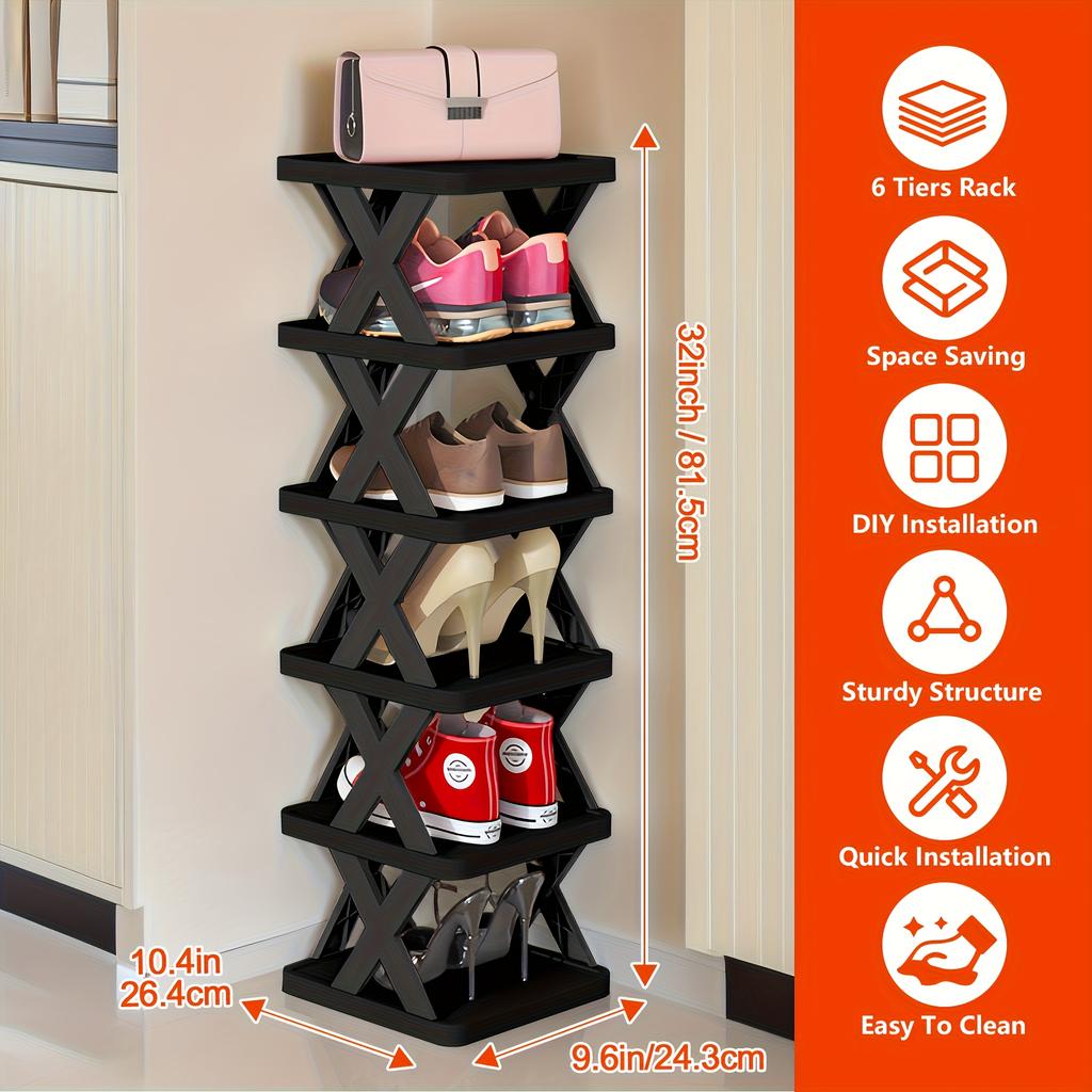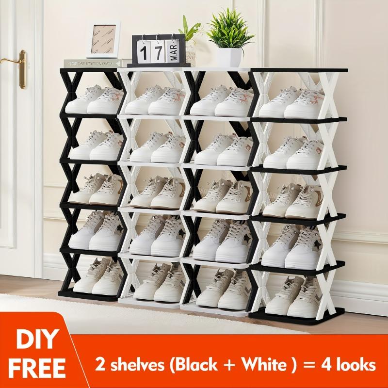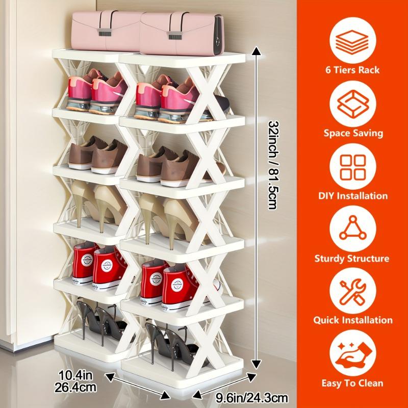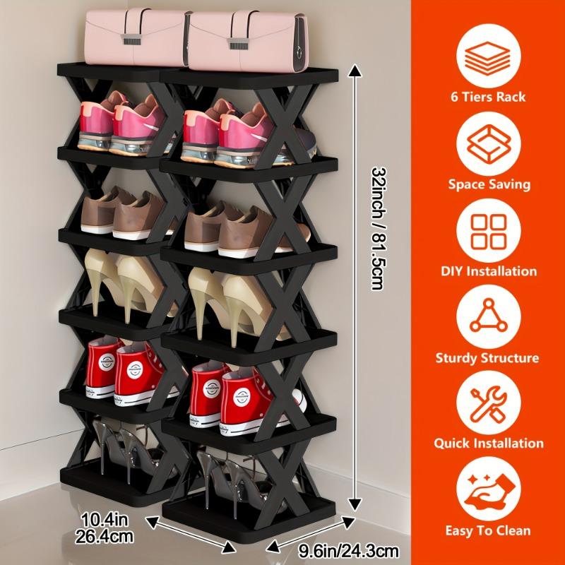 1 УПАКОВКА 6-ярусная сверхпрочная обувная полка, складная и штабелируемая, компактная узкая конструкция, прочная пластиковая обувная полка