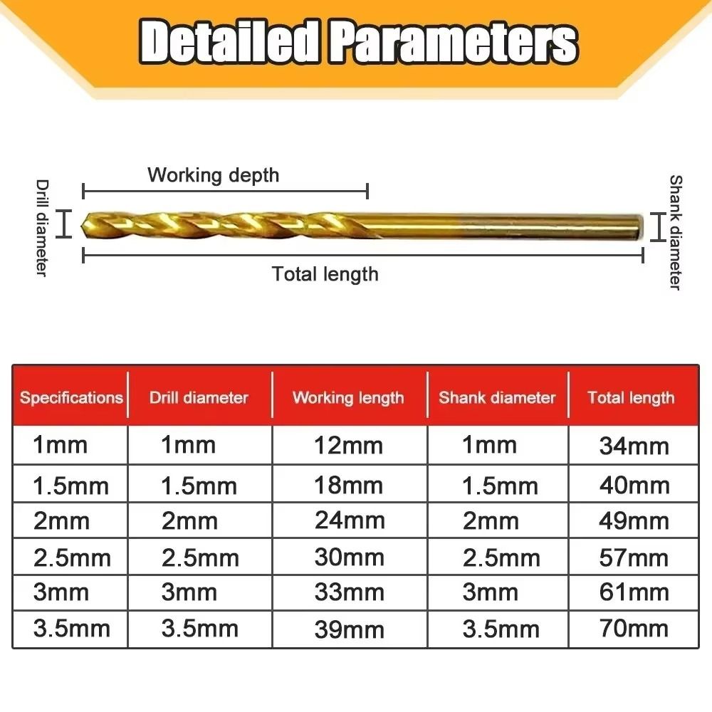3.Универсальный размерный ряд :Доступны в различных размерах (1мм, 1.5мм, 2мм, 2.5мм, 3мм), Эти сверла могут справиться с широким спектром задач по сверлению, что делает их универсальным дополнением к любому набору инструментов.