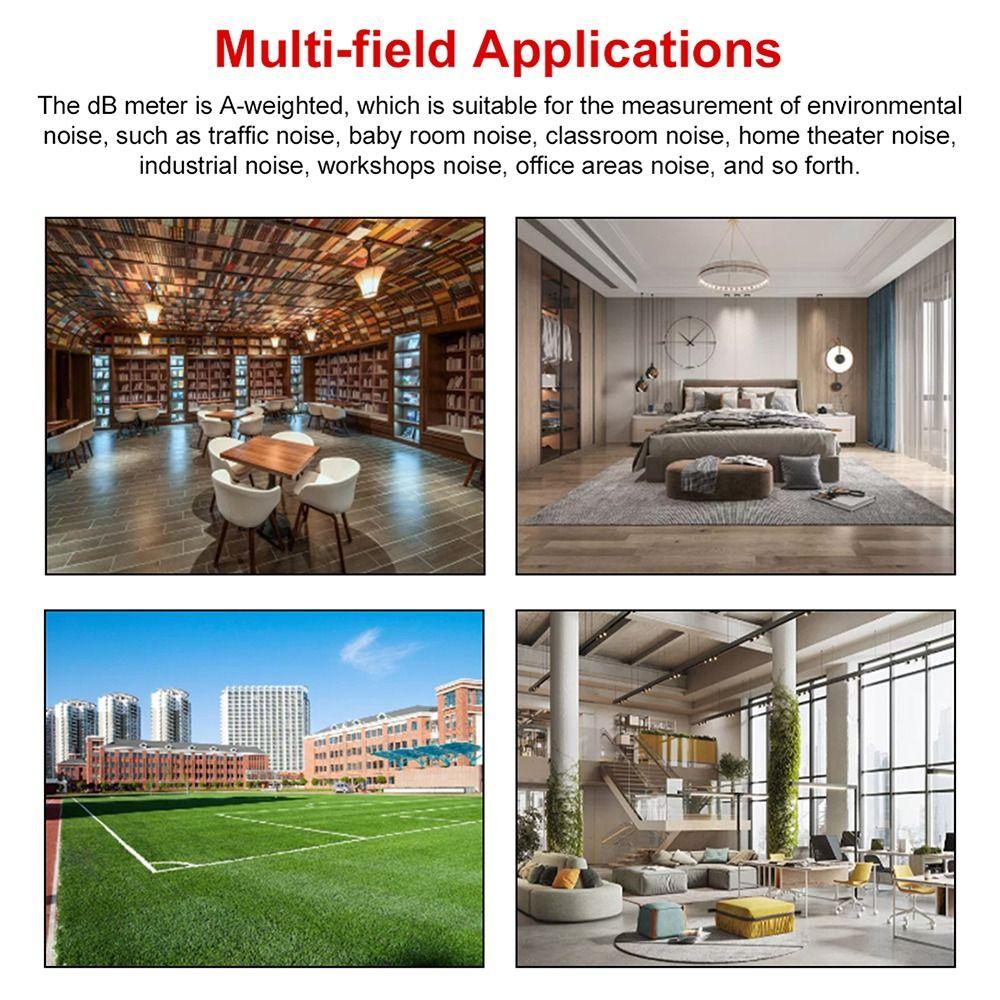 ШИРОКОЕ ПРИМЕНЕНИЕ: Измеритель шума - это использование прибора для измерения уровня шума окружающей среды, который может широко использоваться на заводах, в мастерских, школах, жилых, офисных помещениях, на дорогах, в аудио и других случаях измерения уровня звука.