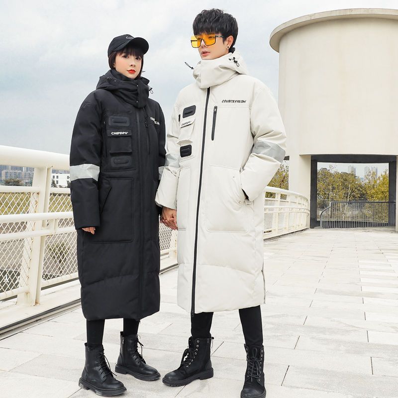 Мужская и женская хлопковая куртка средней длины с капюшоном и светоотражающими полосами, утолщенная, теплая и холодостойкая, удобная пуховая куртка из перьевого шелка — купить товар онлайн с бесплатной доставкой по всему миру!