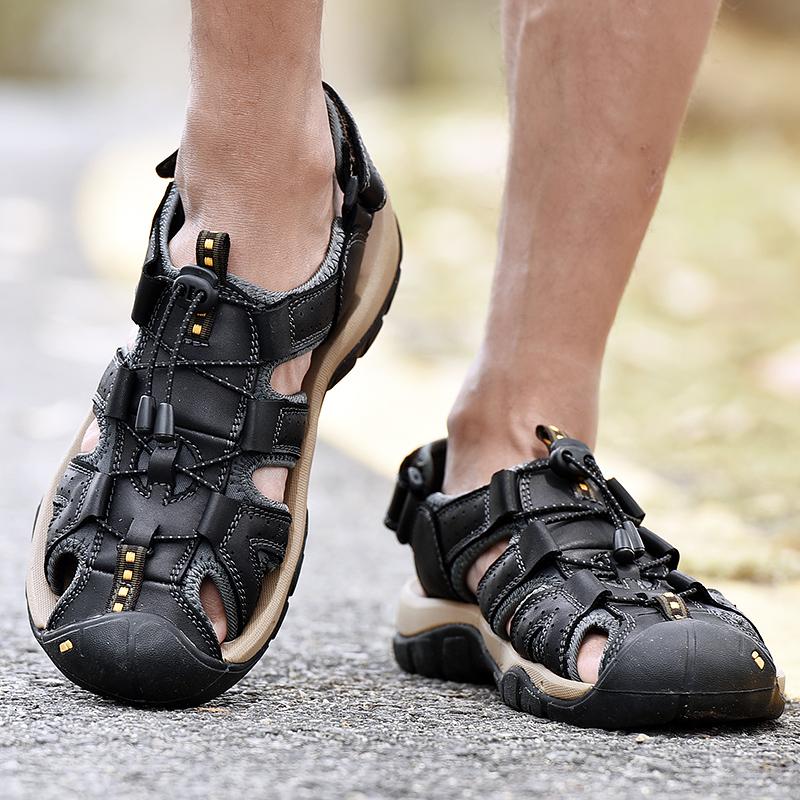 Летние мужские пляжные уличные сандалии Мужские сандалии из натуральной кожи