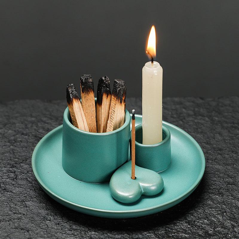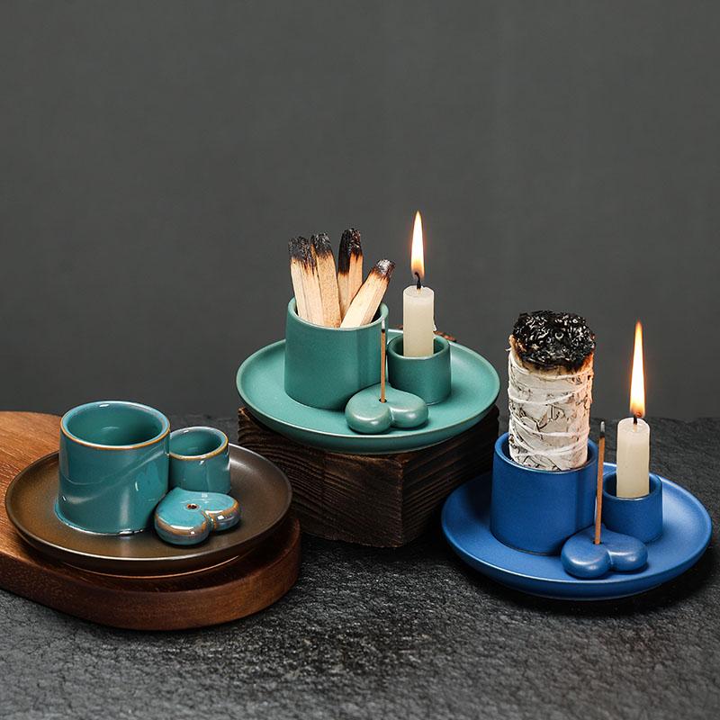 1 шт. Керамический набор для благовоний - Многофункциональный домашний декор, 4-в-1 подставка для благовоний и шалфея, держатель для пало Санто и свечей