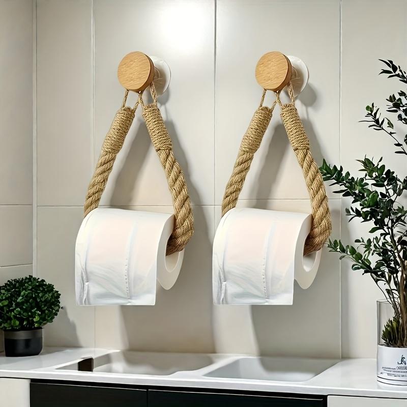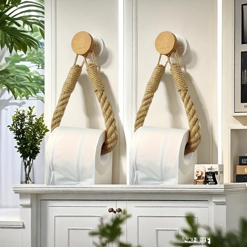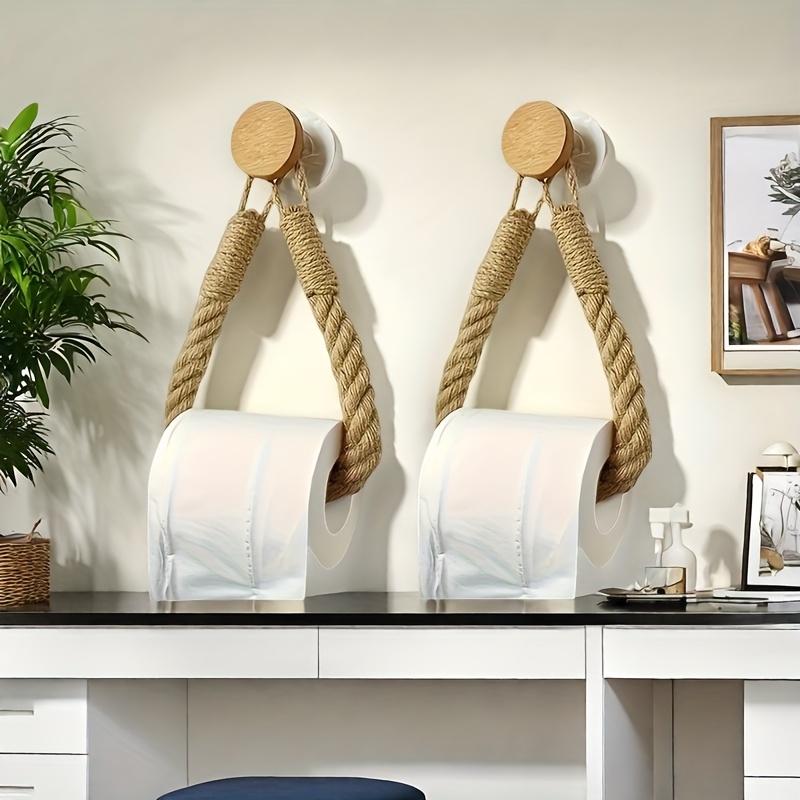 1 шт. Держатель для салфеток в деревенском стиле с натуральной джутовой веревкой - Самоклеящееся крепление на присоске, Ручная работа, Гостиничные принадлежности