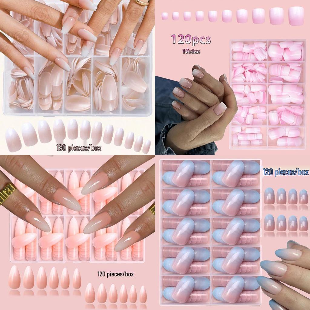 120 Съемные накладные ногти градиентного цвета - Готовые, Носимые, Типсы для накладных ногтей