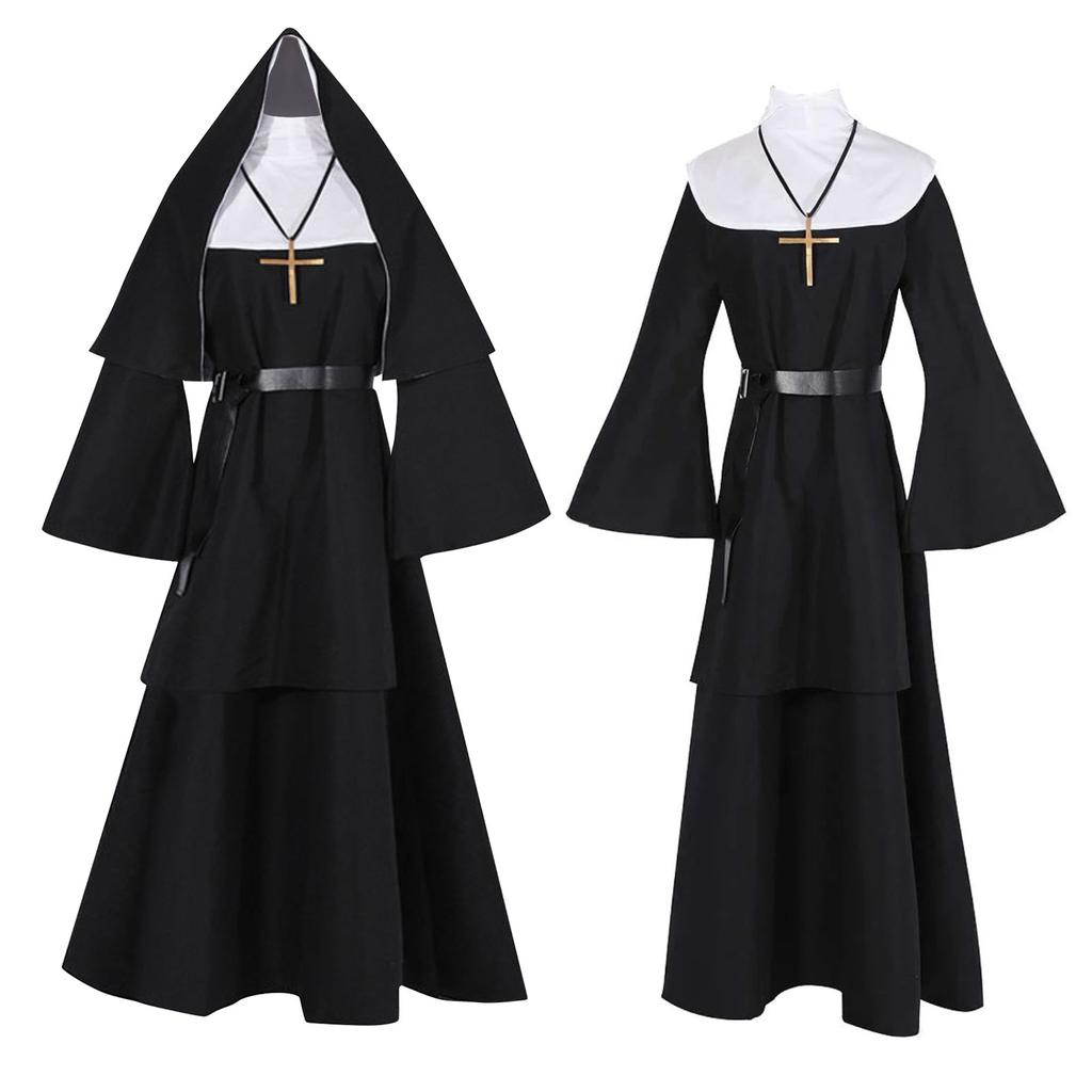 Хэллоуин монахиня косплей костюм комплект из 4 предметов костюм монахини + накидка + пояс + ожерелье косплей костюм