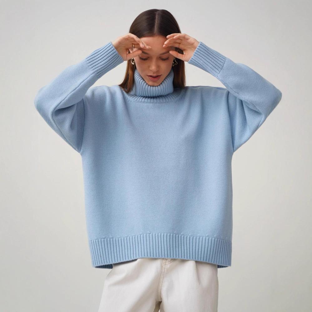 Однотонный свитер с высоким воротником Осень Зима Удобный Свободный Классический Универсальный Пуловер Роскошный Расслабленный крой Приталенный и Универсальный Топ