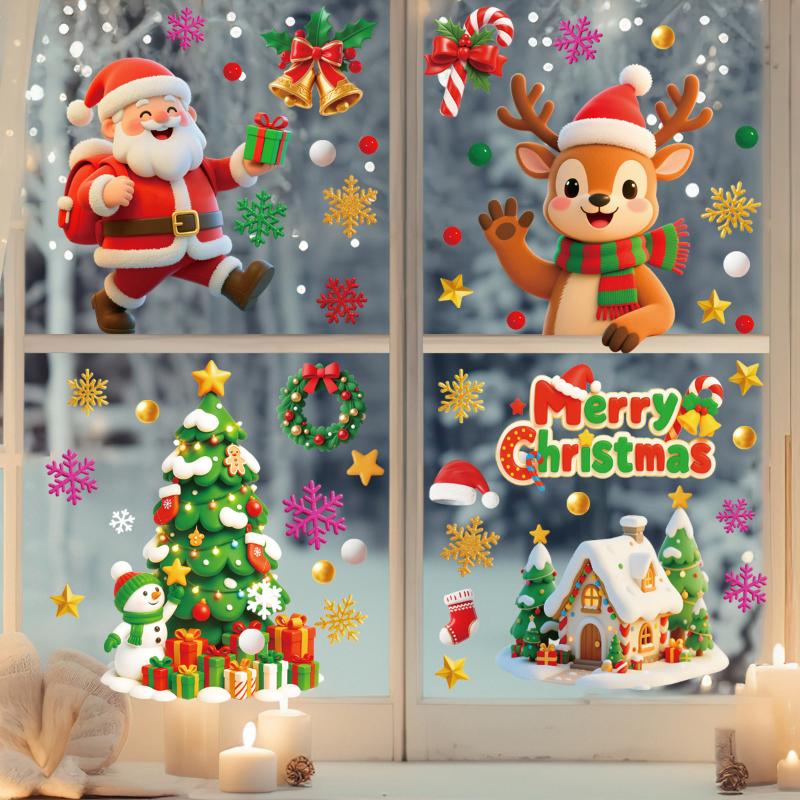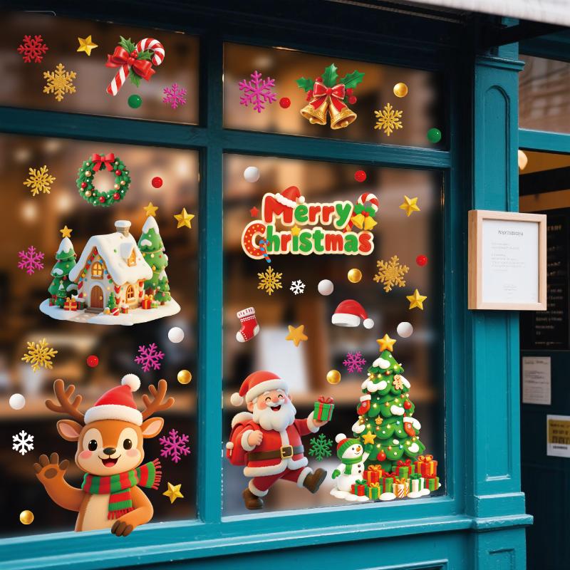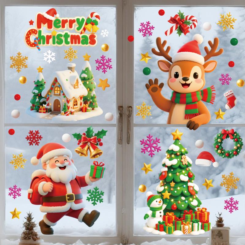 Рождественские наклейки на окна Санта Снеговик Олень Счастливого Рождества Стеклянная наклейка Зимняя сказка Наклейки на окна