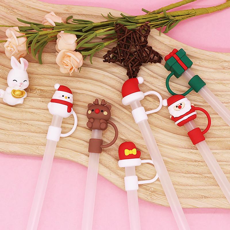 Рождественская тема, милый соломенный пылезащитный колпачок, пылезащитная заглушка, съемная кукла, милый соломенный пылезащитный чехол, стеклянный соломенный чехол из нержавеющей стали