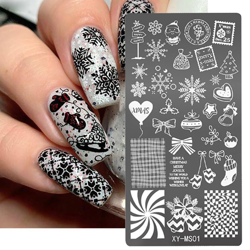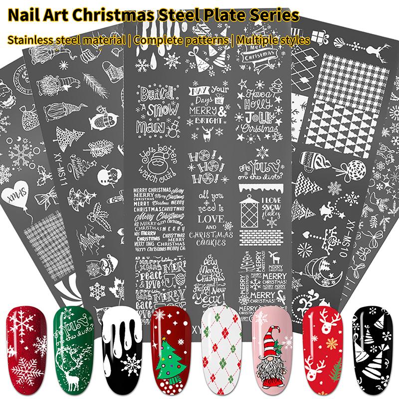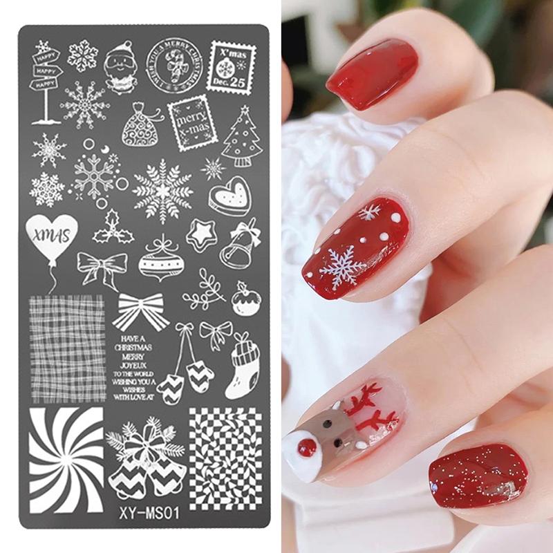 Пластины для стемпинга ногтей на Рождество, серия «Празднование», узор «Снеговик», шаблон для маникюра из нержавеющей стали