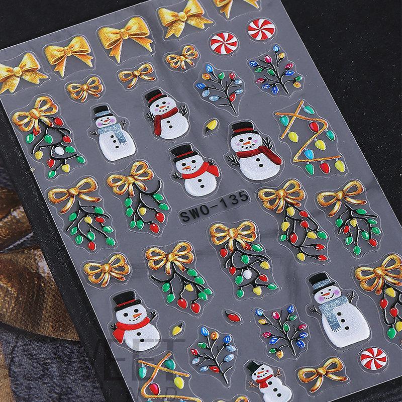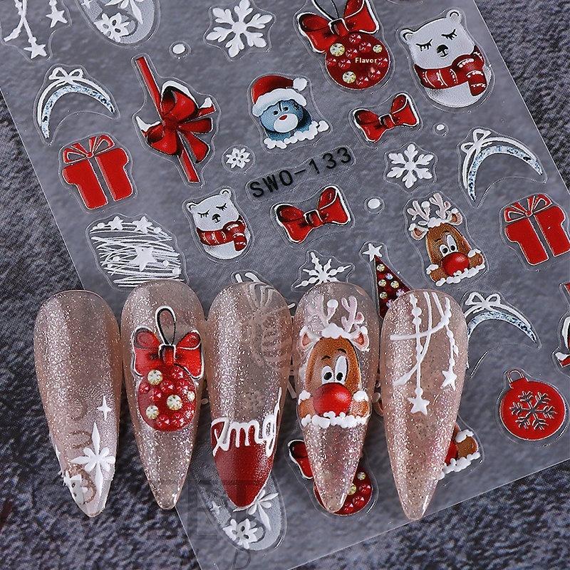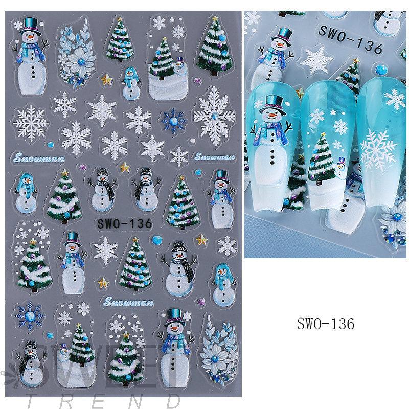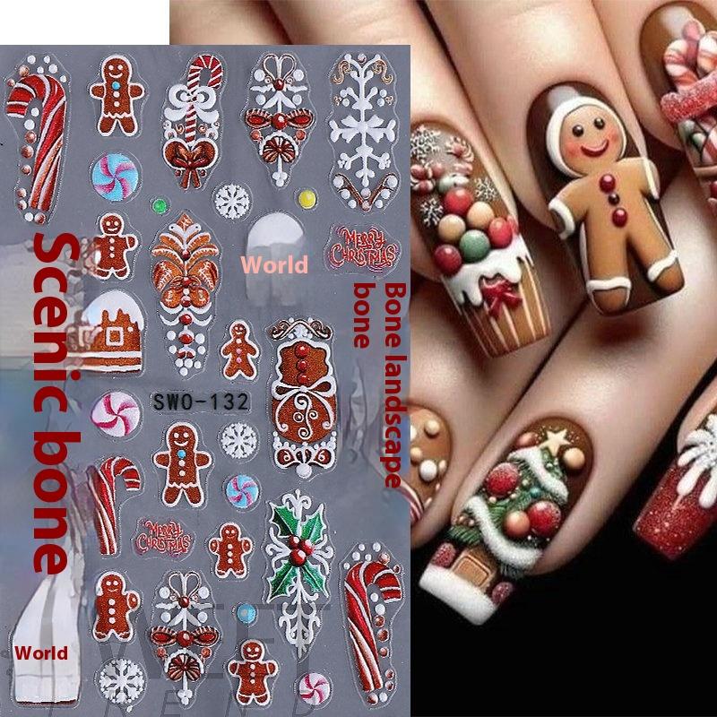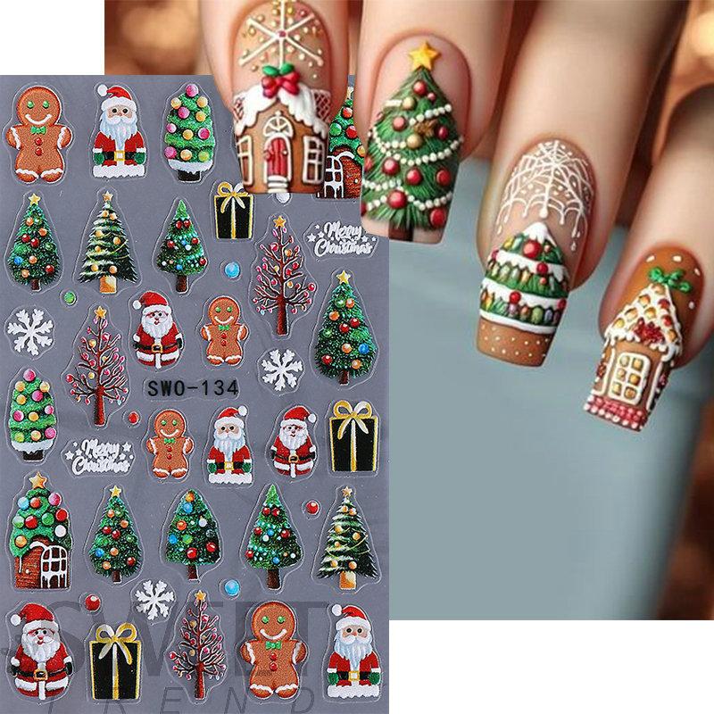 1 шт. 5D Пряничный человечек Снежинка Наклейки для ногтей Рождественская сосна Торт Самоклеящаяся наклейка для ногтей Зимние принадлежности для DIY маникюра