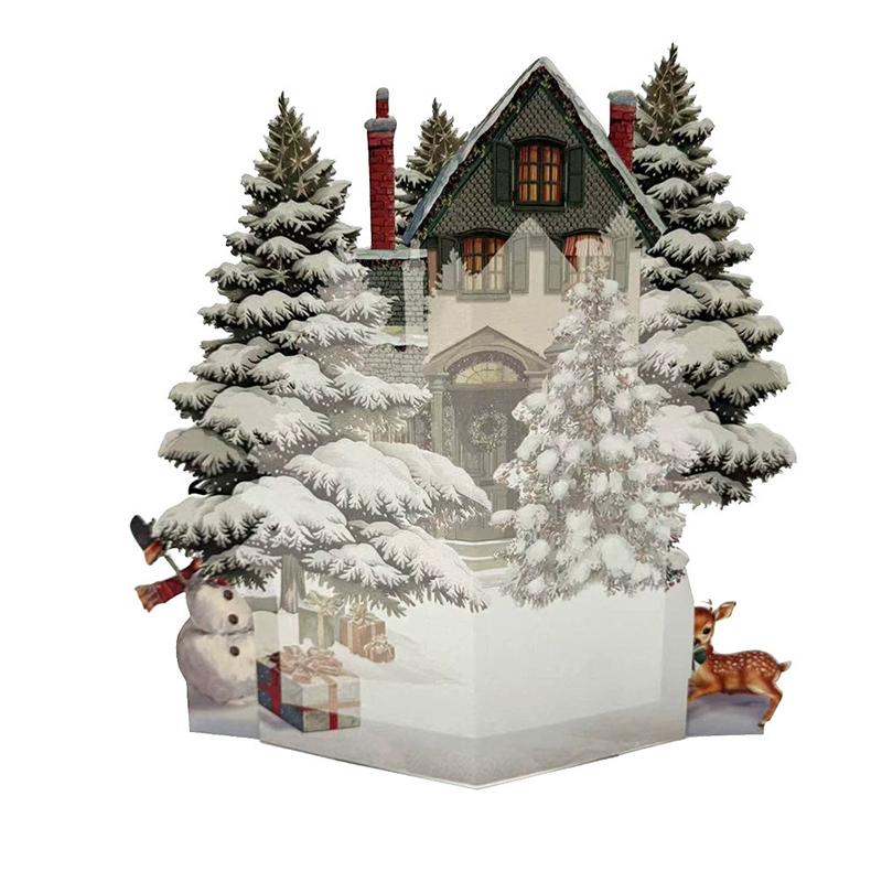 3D Рождественская открытка Сцена «Ночь перед Рождеством» с Сантой, оленями, заснеженной деревней и лунным небом Праздничная поздравительная открытка F