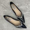 Темпераментные остроносые лаковые туфли с горным хрусталем, женские летние туфли на плоской подошве, с внутренней высотой, нежные туфли с мелким вырезом и мягкой подошвой