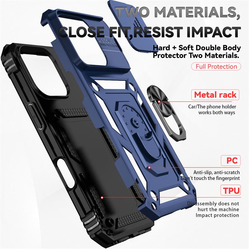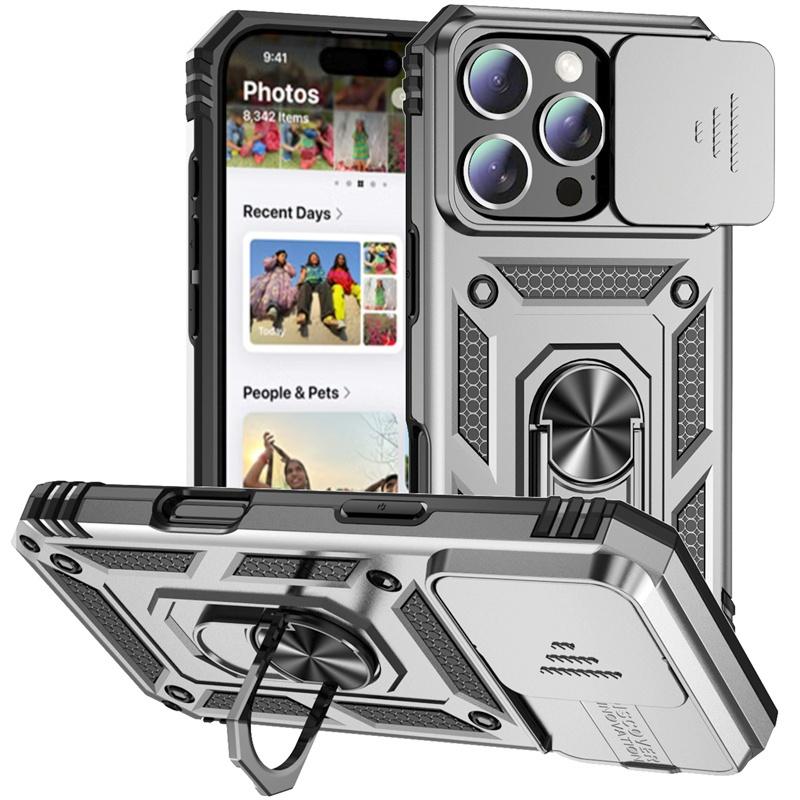 Чехол-броня с выдвижной камерой для iPhone 16 15 14 13 12 11 Pro Max Mini XS XR X 7 8 Plus Крышка Кольцо для защиты объектива Подставка-держатель Funda