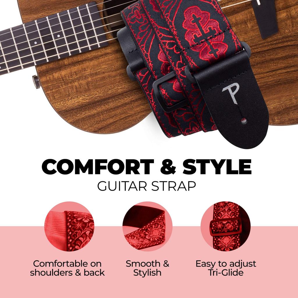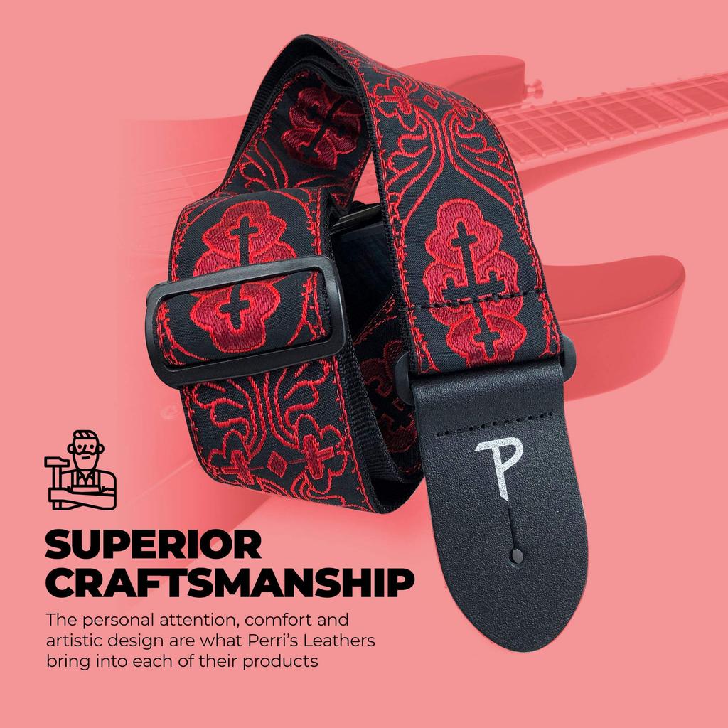 Жаккардовый гитарный ремень крест Perri's TWS-7071 Черный/Красный