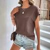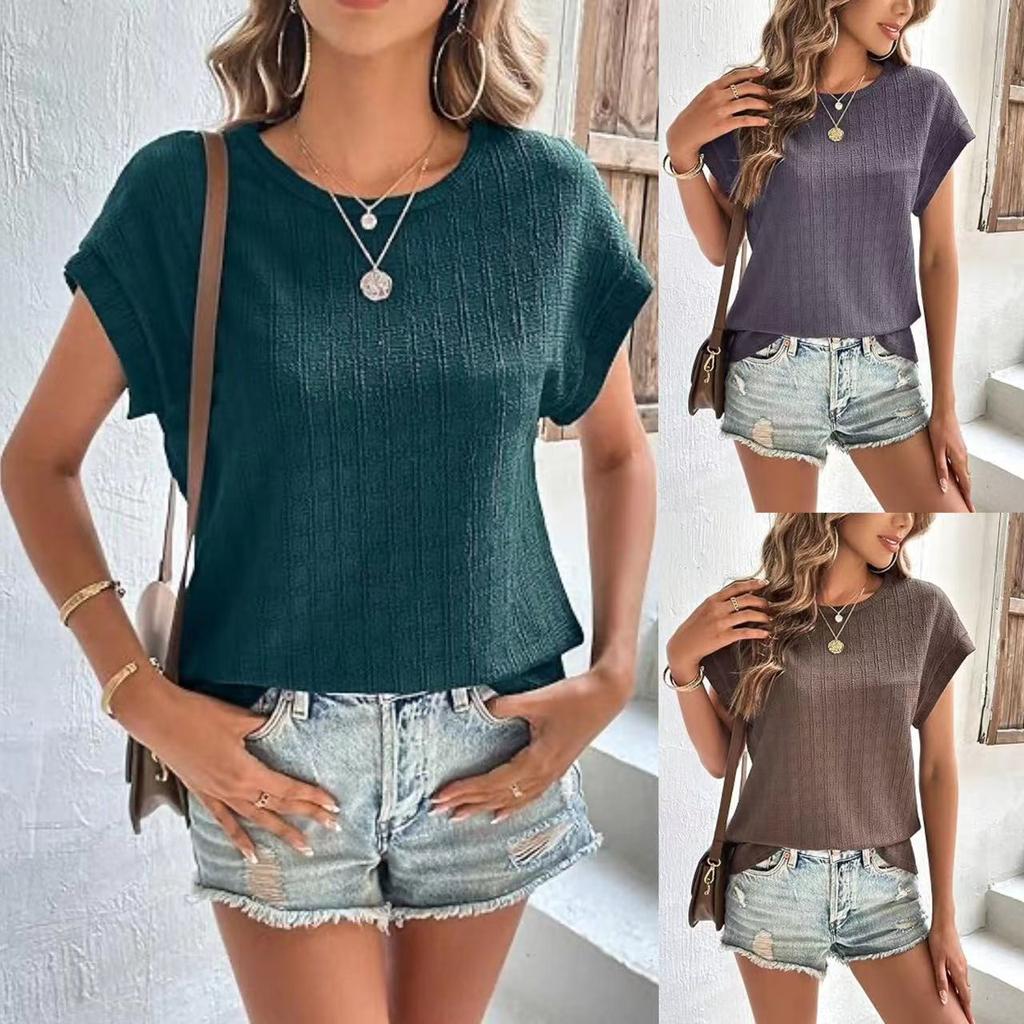 Женская летняя футболка с коротким рукавом, круглым вырезом, однотонная, жаккардовая клетка, пуловер, топ